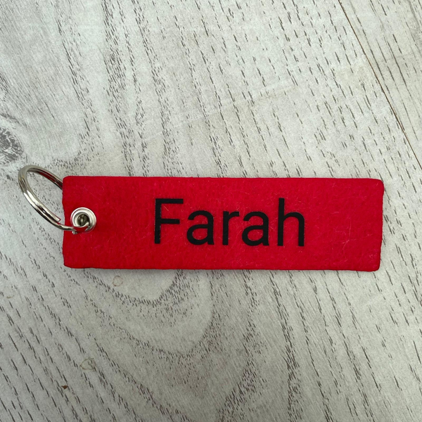 Deze vilt sleutelhanger met naam is een leuk en praktisch accessoire voor aan je sleutelbos of tas. Het maakt het makkelijk om je sleutels te herkennen, of om je tas een persoonlijk tintje te geven. De sleutelhanger wordt gepersonaliseerd met een naam, waardoor het een uniek item is. Het is ook een ideaal cadeautje voor vrienden, familie of collega's!