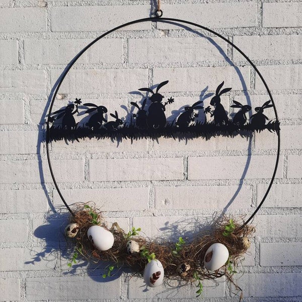 Maak uw ramen helemaal klaar voor Pasen met deze Paasring! De ring heeft een elegant ontwerp met schattige paashaasjes op een rijtje, perfect om de lente en de feestelijke sfeer in huis te halen.